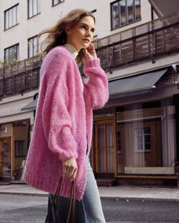 Eine weiche, luftige, gestrickte Longstrickjacke mit entspannter Passform und schlichtem Design. Die flauschige Struktur und die großzügige Länge machen sie perfekt zum Layern für einen modernen und bequemen Look.