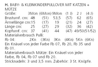 Anleitung für Pullover mit Katzen Mütze.Stricknadeln 3 und 3,5 mm.Garnverbrauch: klicken Sie im Textfeld unten links....