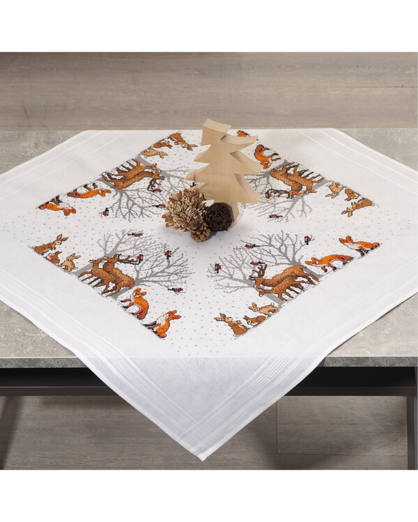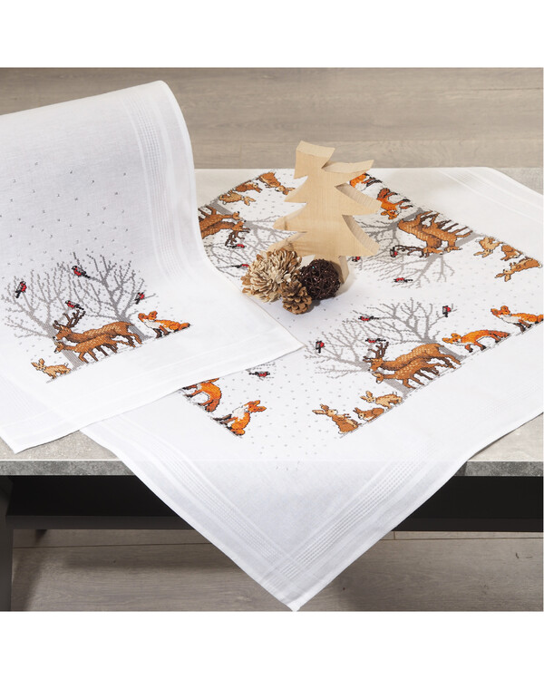 Sie sticken mit Sticktwist in Kreuz-, Stepp und Knötchenstichen auf weißer Baumwolle. Motiv vorgedruckt. Fertigkonfektioniert.