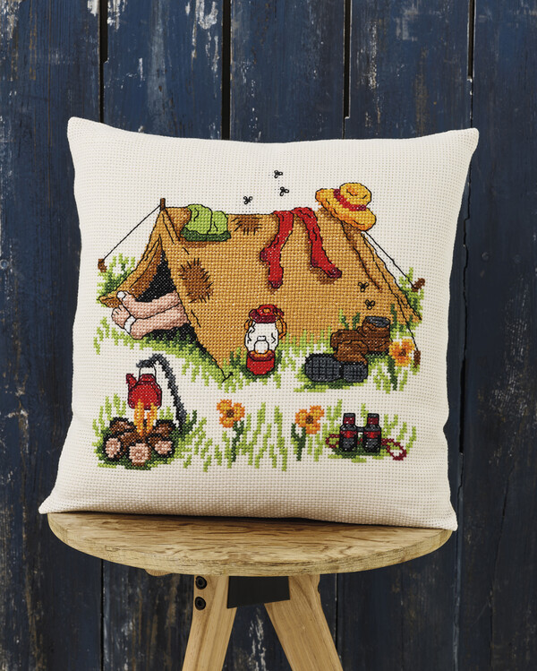 Markenware > L > Lindner's Kreuzstiche > Stickpackung Kissen Campingausflug