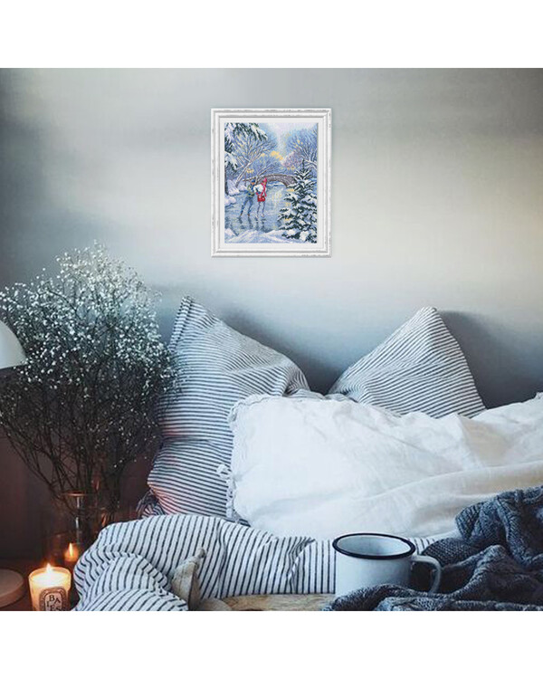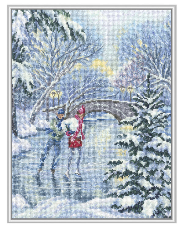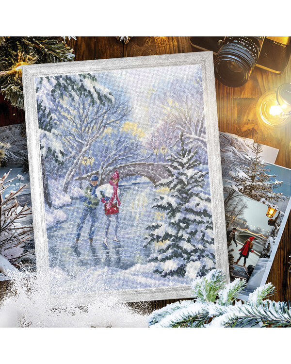 Erlebe den Zauber des Winters mit dieser stimmungsvollen Stickpackung!Ein Paar gleitet Hand in Hand über den zugefrorene...
