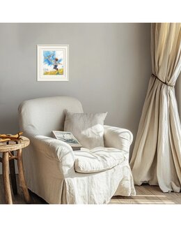 Ein Junge läuft durch die Farben einer Sommerwiese, während das Flugzeug am Himmel schwebt – ein Motiv voller Träume, Verspieltheit und Abenteuerlust.