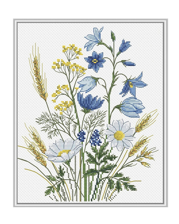 Markenware > L > Lindner's Kreuzstiche > Stickpackung Bild Blumenwiese in Blautönen