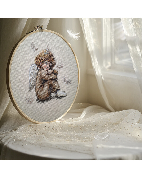 Ein wundervolle Stickpackung voller Wärme!Der süße kleine Engel mit lockigem Haar und weichen Flügeln verbreitet stille ...