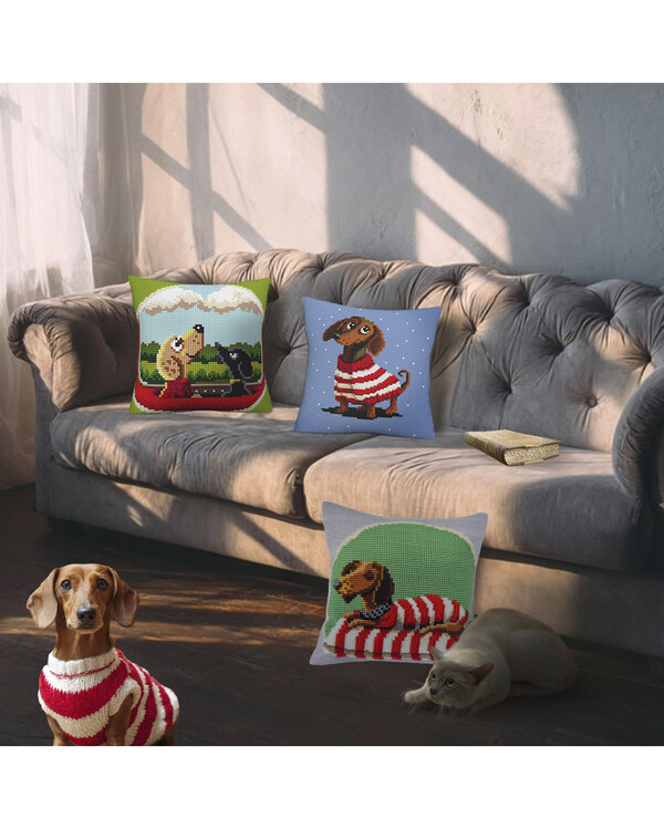Das Motiv versprüht Verspieltheit und Wärme – perfekt für alle, die Hunde und fröhliche, kreative Wohnaccessoires lieben. Ein toller Blickfang, der sowohl im Kinderzimmer als auch auf dem Sofa eine gute Figur macht – voller Persönlichkeit und Farbe.