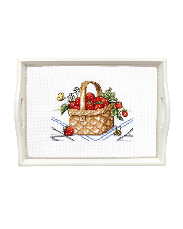 Das Stickmotiv mit süßen Erdbeeren passt perfekt zum Tablett, Art. Nr. 417600.