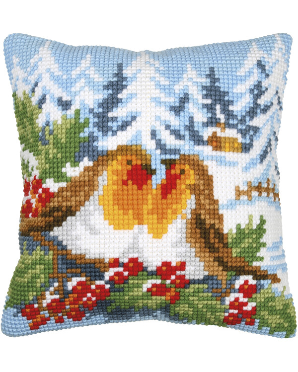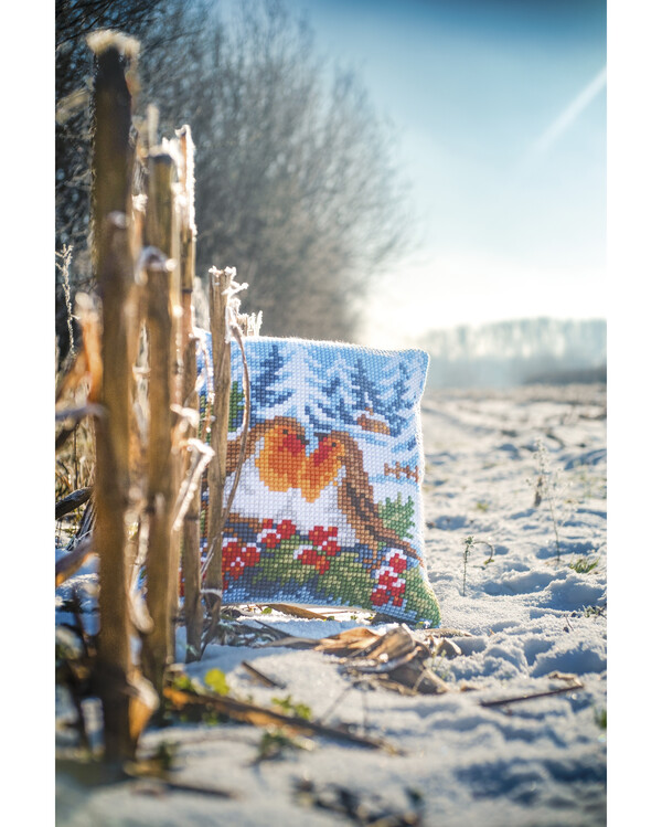Markenware > L > Lindner's Kreuzstiche > Stickpackung Kissen Rotkehlchen