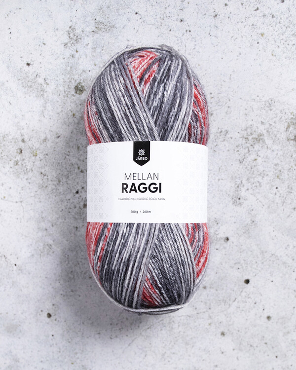 Garn Mellanraggi von Järbo Garn ist ein schönes und strapazierfähiges Garn aus Superwash-behandelter Wolle und Polyamid. Das Garn ist in vielen schönen Farben erhältlich und eignet sich für Socken genauso gut wie für Schals, Mützen, Fäustlinge und Pullover.