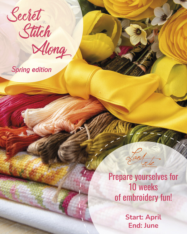 Auch in diesem Frühjahr hast du die Chance, bei diesem geheimen Stickprojekt dabei zu sein. Über einen Zeitraum von 10 Wochen, beginnend am 17.04.2026, veröffentlicht Lanarte Teile einer Stickvorlage auf deren Facebook-Seite und per E-Mail. Anmeldung ab 17.03. also trag dich am besten gleich ein! Mehr Infos dazu, wie der "Secret Stitch Along“ abläuft, findest du im Kit.